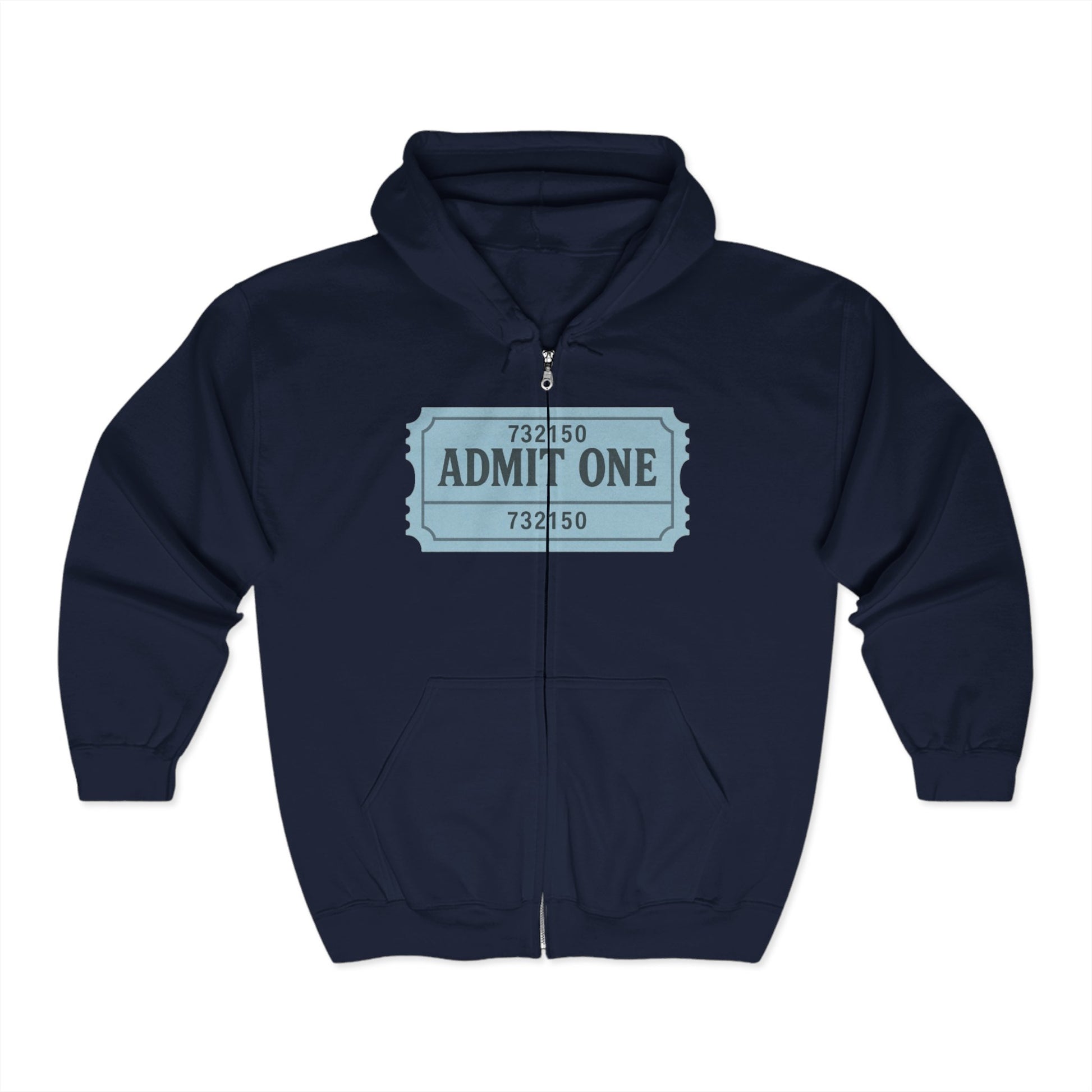 The Ticket Zip Up Hoodie - Admit One Design, Medium-Heavy Fabric, Concert Hoodie, Gift for Him/Her, Everyday Wear, Casual Outings